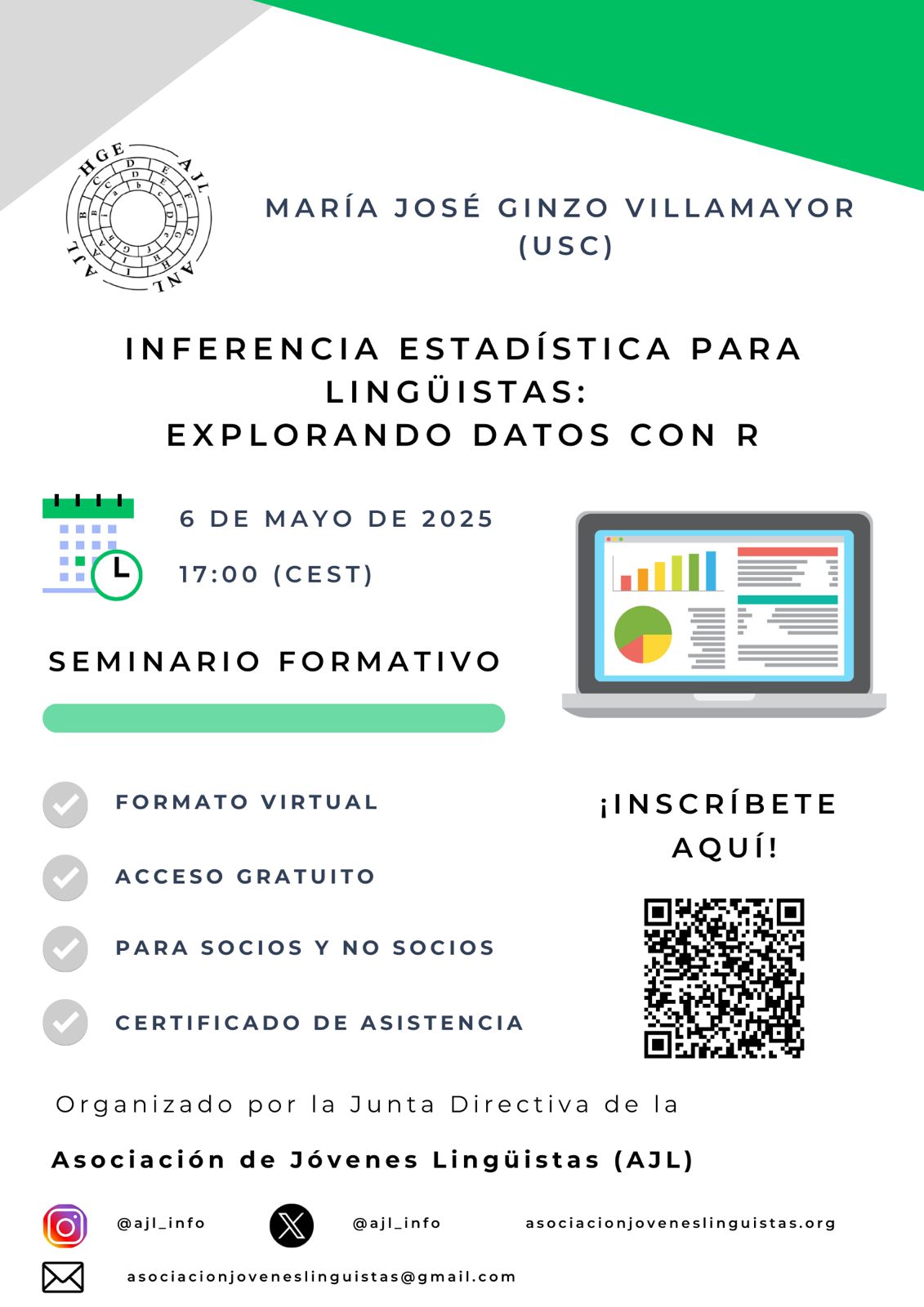 - María José Ginzo Villamayor (USC): Inferencia estadística para lingüistas: explorando datos con R